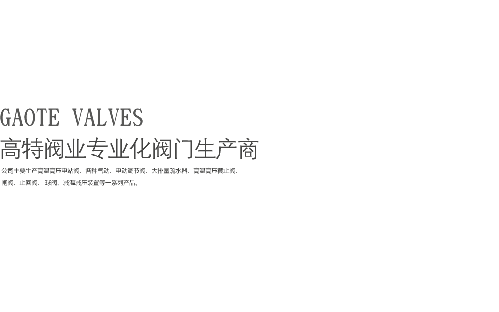 公司主要生產(chǎn)高溫高壓電站閥、各種氣動(dòng)、電動(dòng)調(diào)節(jié)閥、大排量疏水器、高溫高壓截止閥、